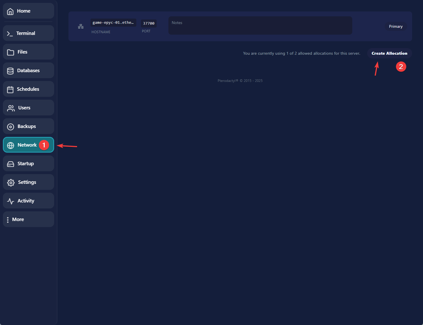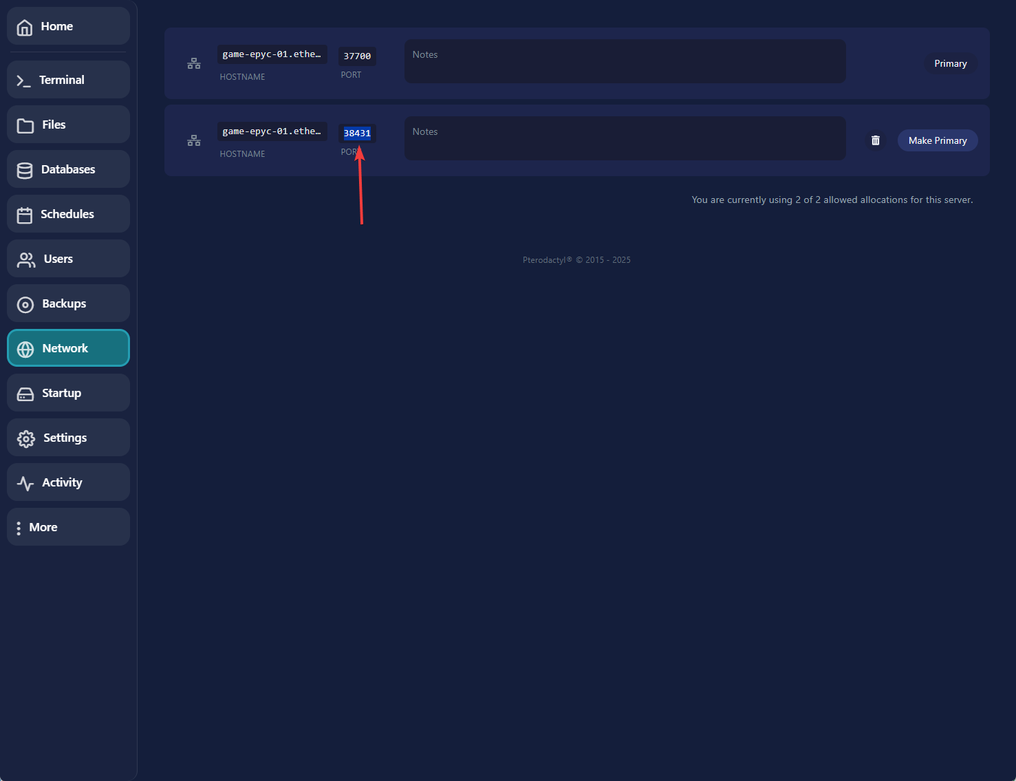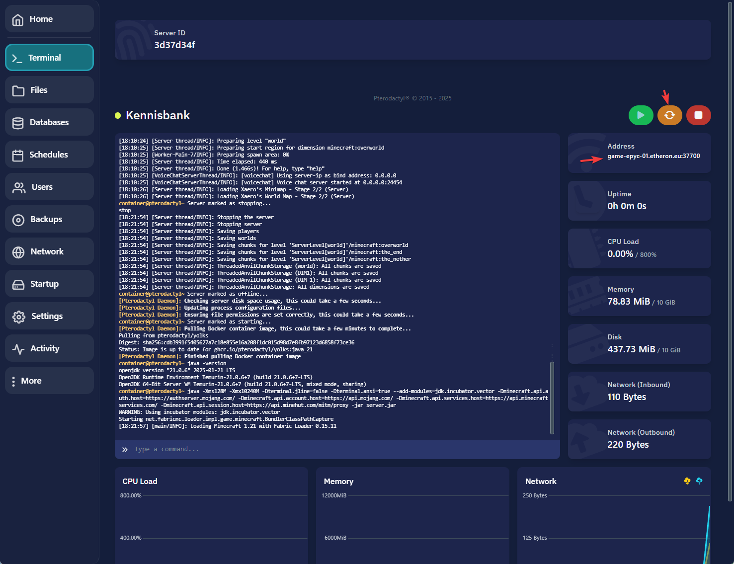 Herstart nu je server. Kopier ook gelijk het ip adres, wil je een eigen ip adres stel dan een subdomein of een play domein in.