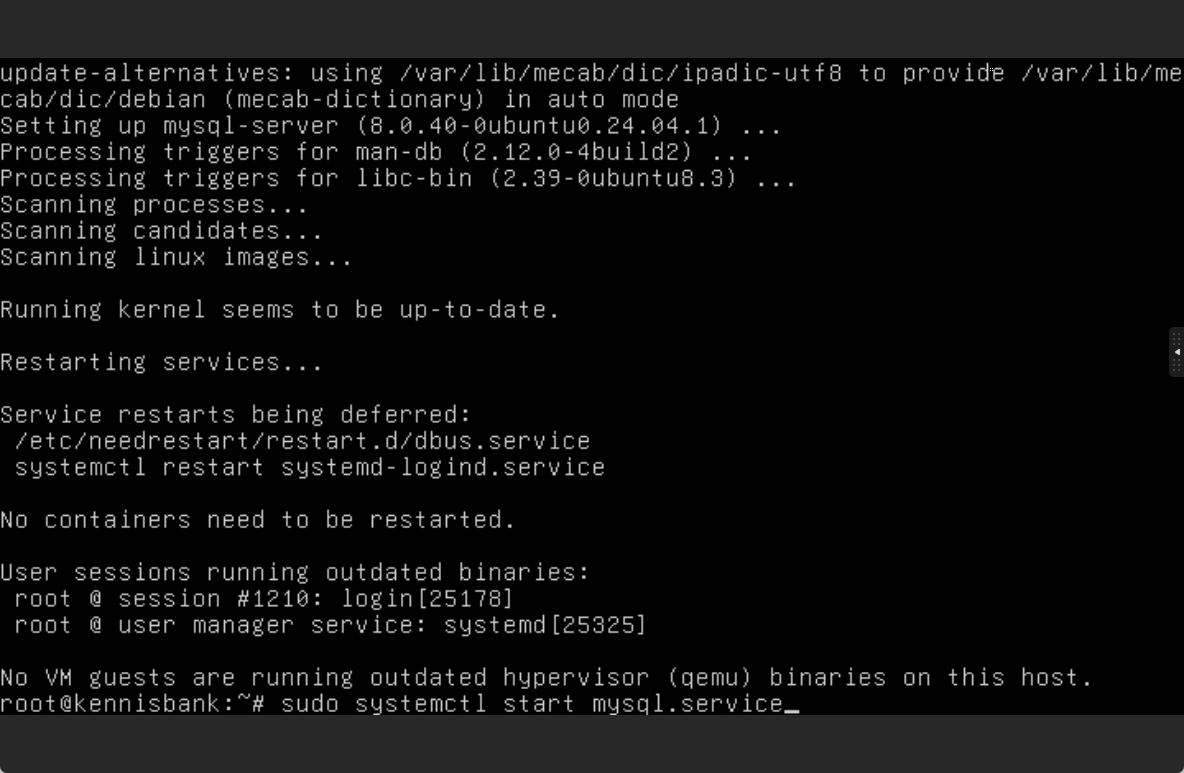 - Nu is MySql geïnstalleerd. Type: sudo systemctl start mysql.service