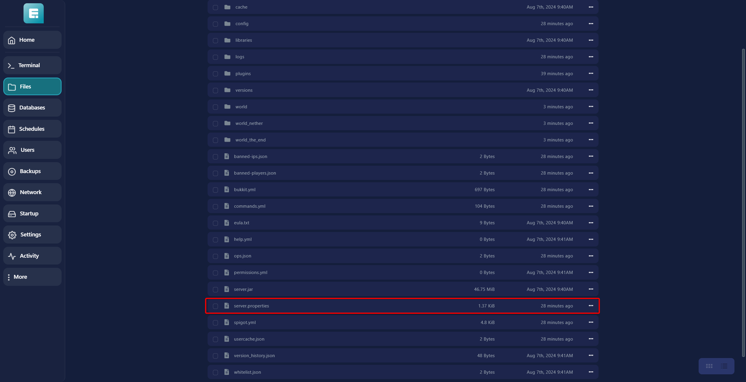 - Zodra de server klaar is met laden, zet je hem weer uit en ga naar Files links in het scherm.