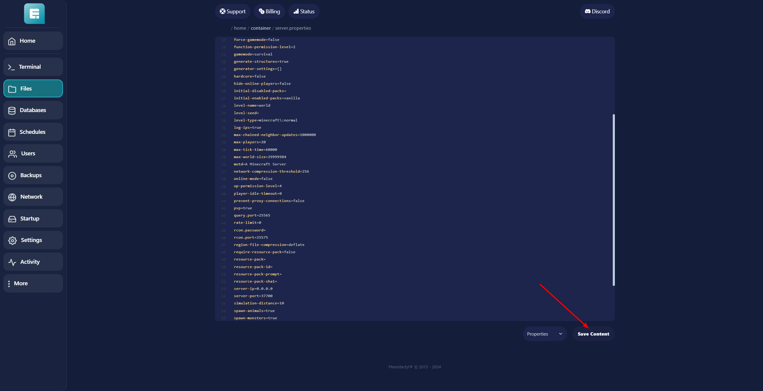 - Heb je meerdere servers? Vul die dan bij de rest in. Zo niet, verwijder de overige servers die er staan. Laat "try = ["lobby"]" wel staan! Ga dan door naar "[forced-hosts]" en verander "lobby.example.com" met het Address wat je hiervoor hebt ingevuld. Verwijder alles wat je bij de vorige stap ook hebt verwijderd of pas het aan zoals in de vorige stap! Klik hierna op Save Content.