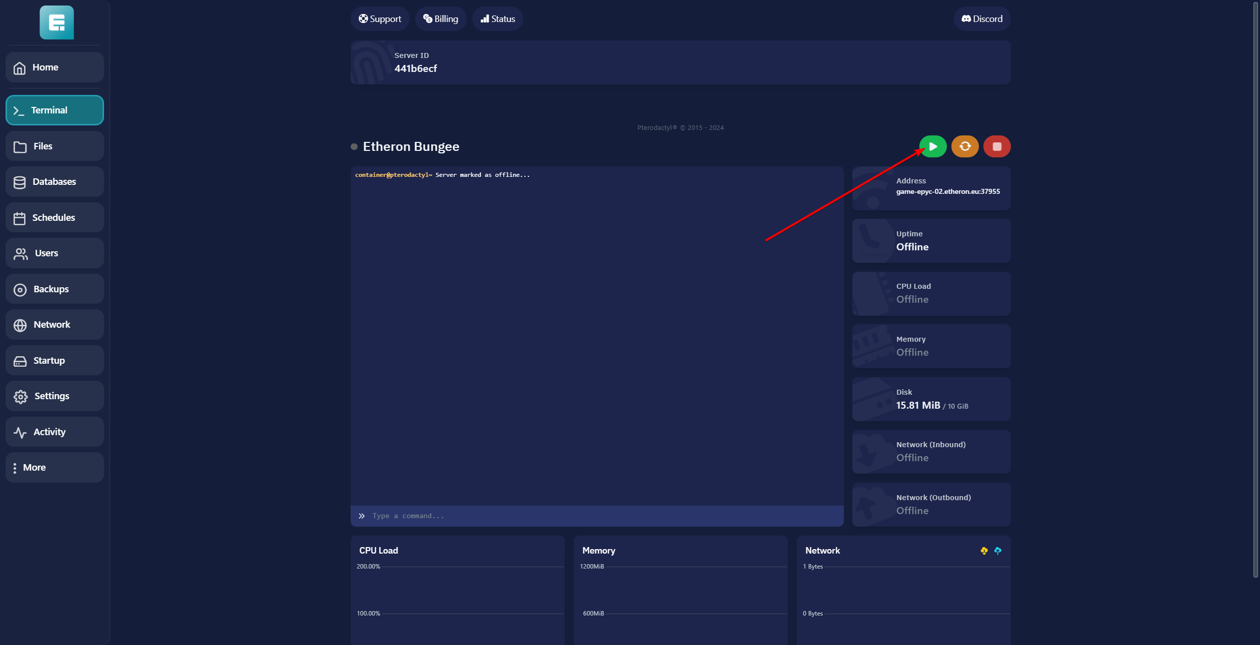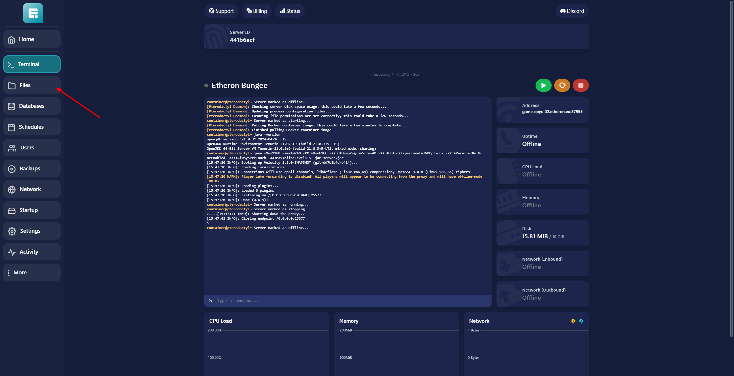 Log in op het gamepaneel en ga naar de gewenste Bungee-server.