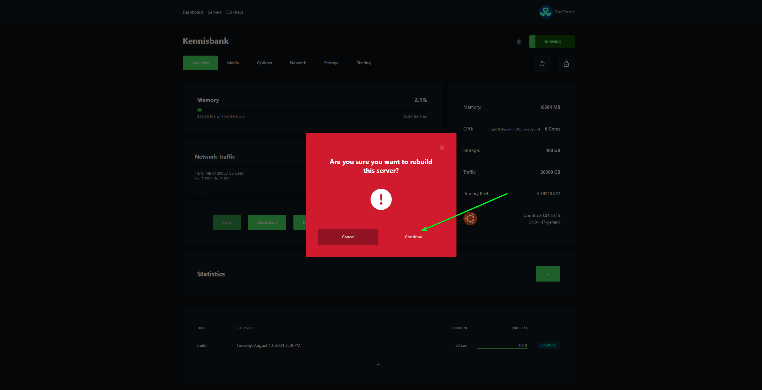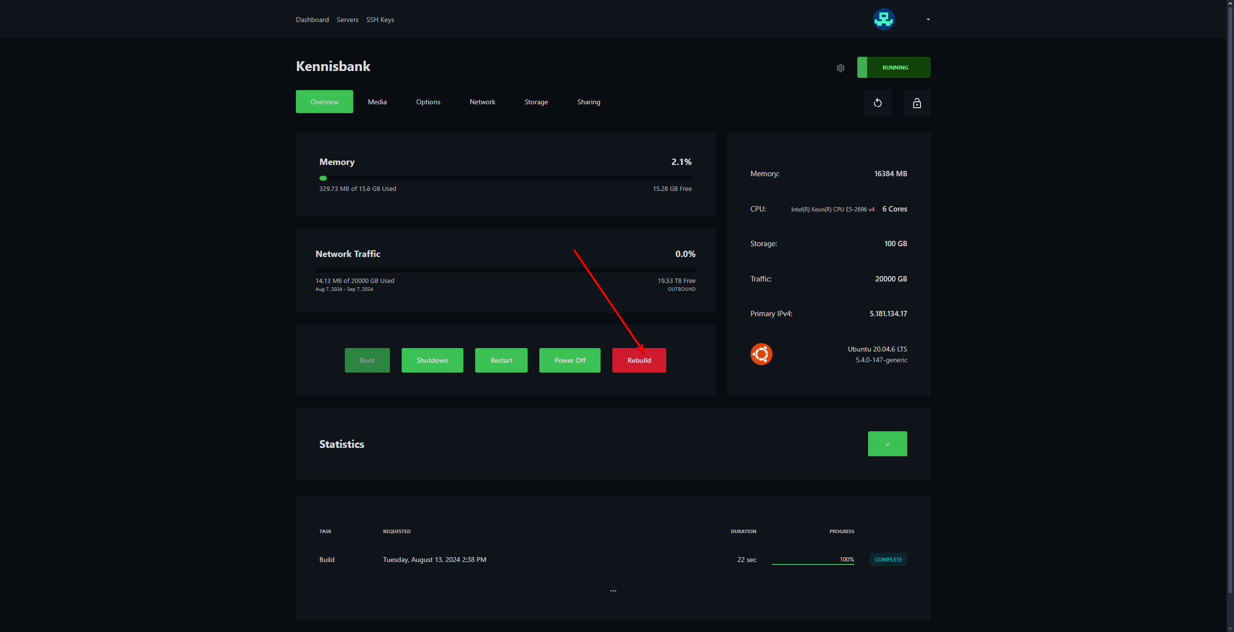 - Klik op de rode knop waar Rebuild op staat.