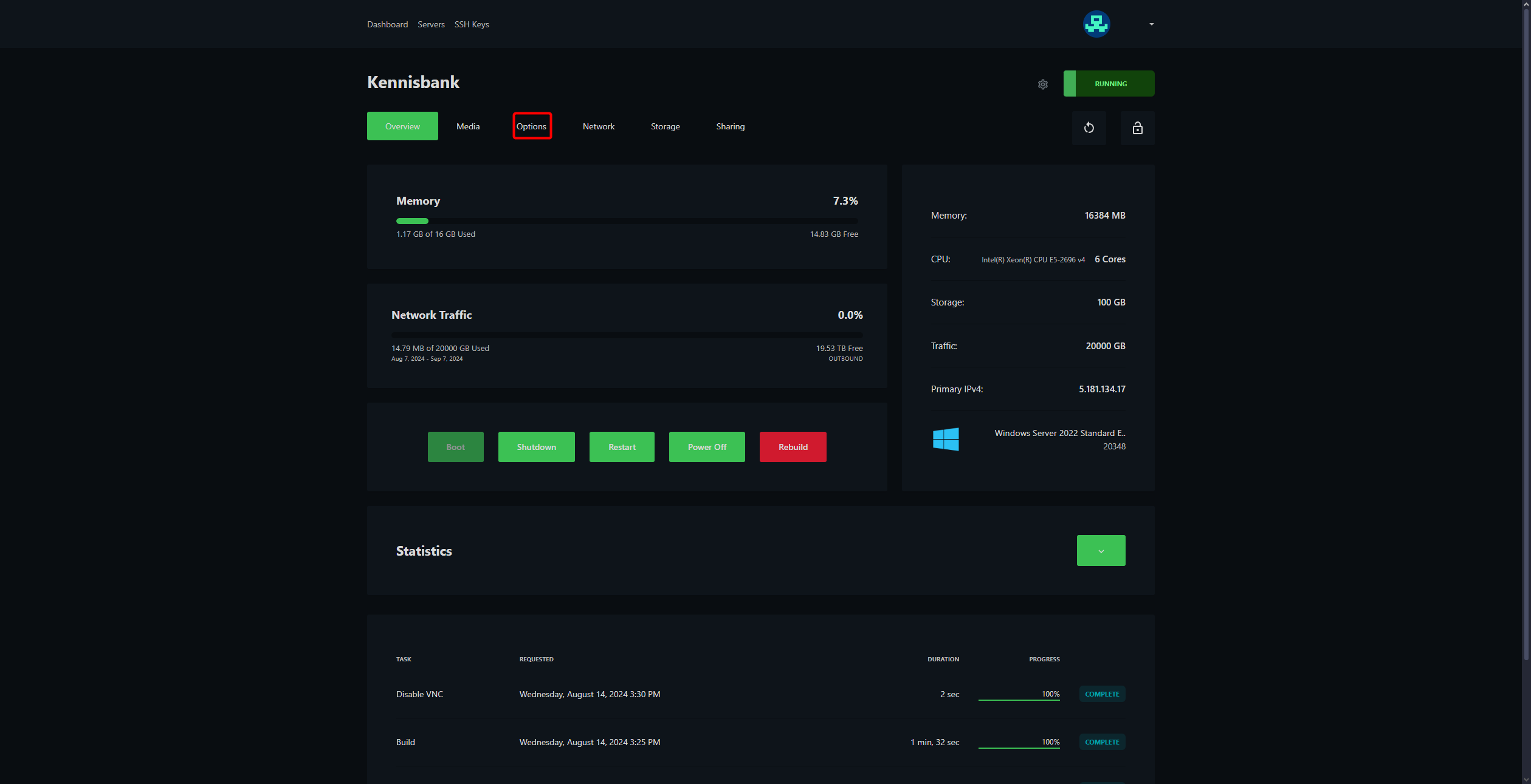 Ga naar je VPS op het VPS paneel.
