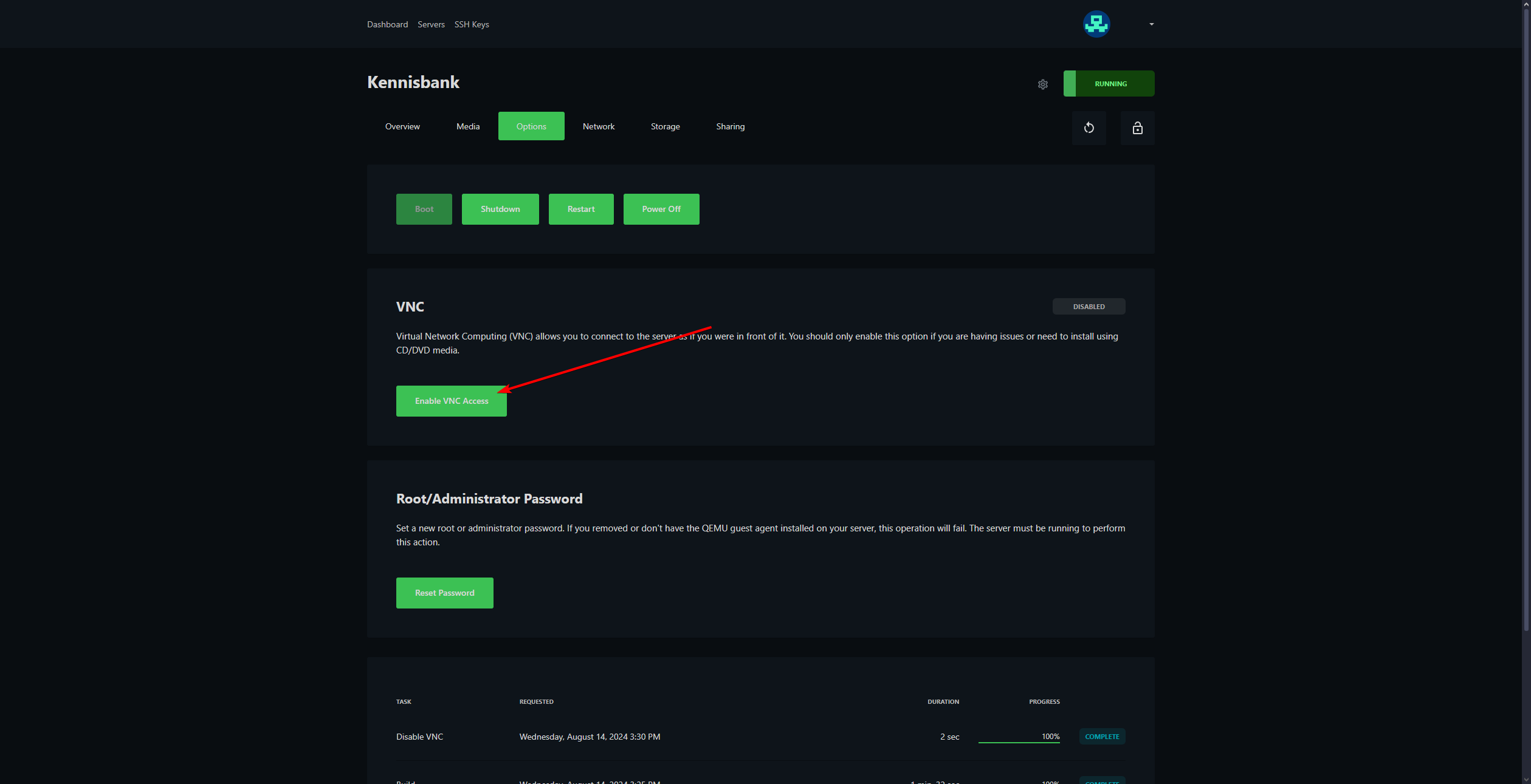 - Klik op Enable VNC Access.