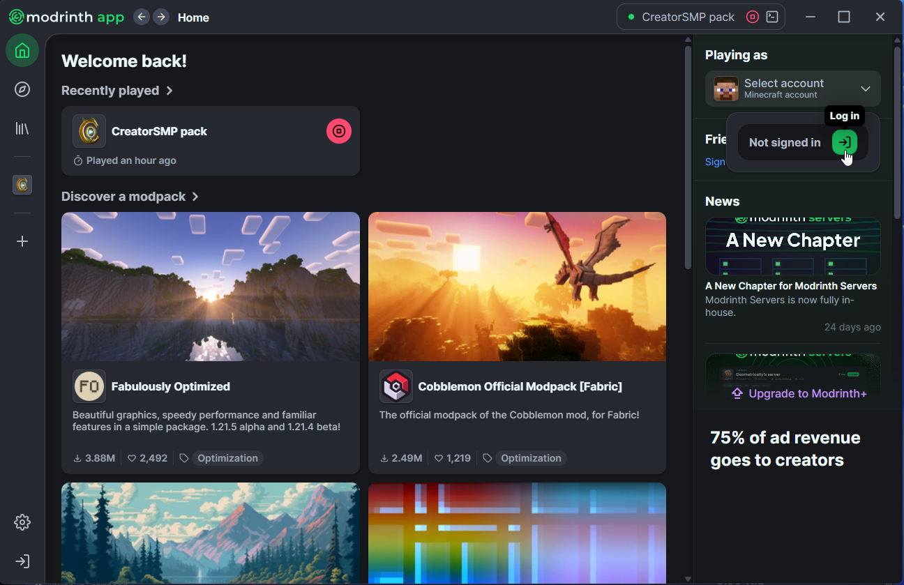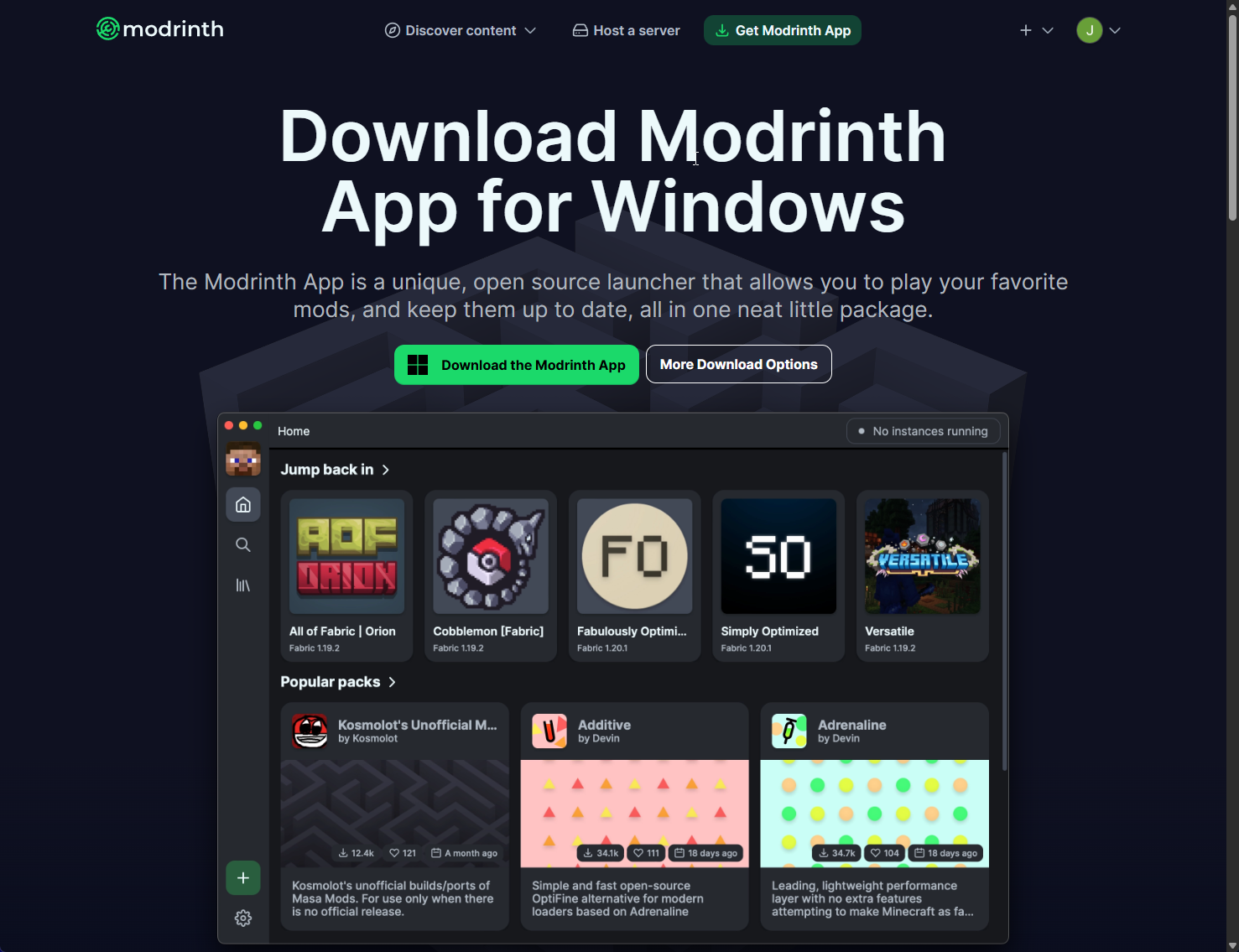 - Download de Modrinth app & installeer deze client.