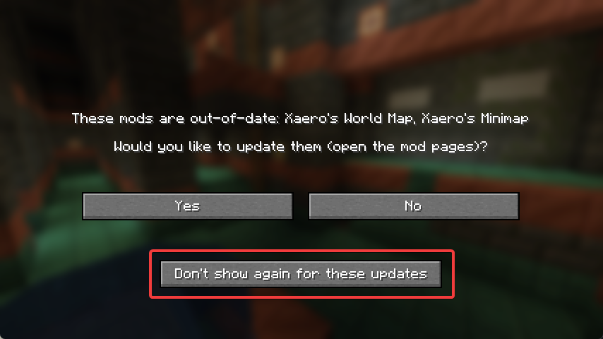 - Nu start Minecraft op druk dan direct op Don't show again for these updates!