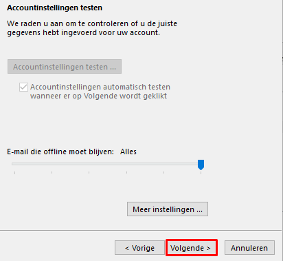 - Klik op **Volgende **om een mailtest uit te voeren.