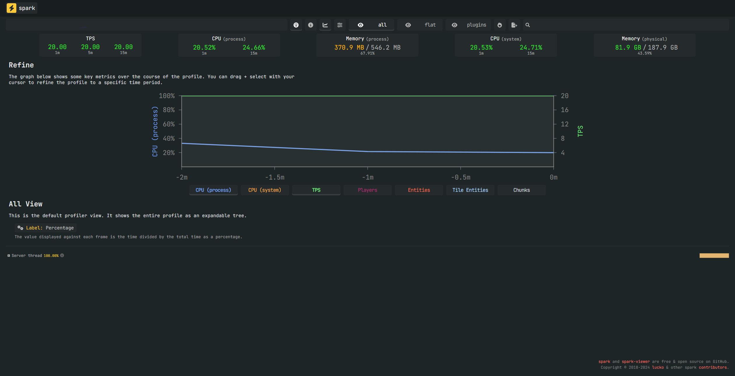 - Doe hierna het command: /spark profiler open