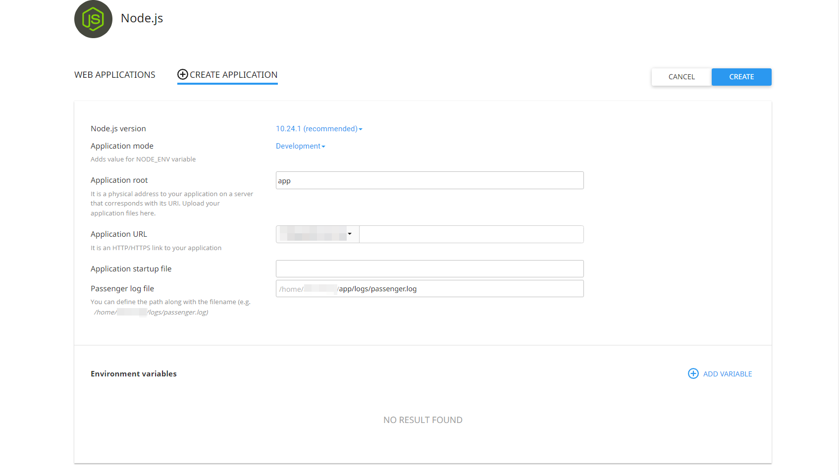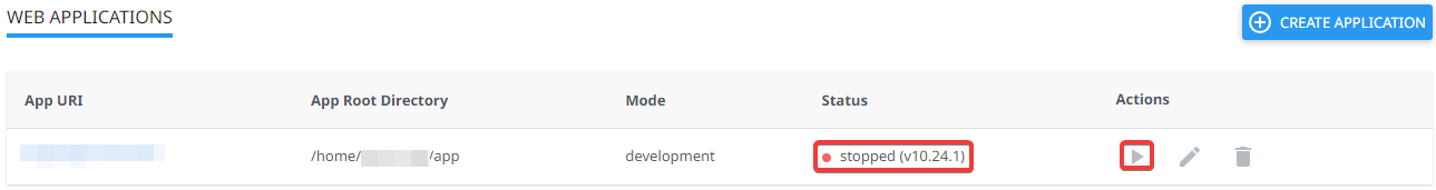 Node.js versie: Selecteer de juiste Node.js versie voor je toepassing. DirectAdmin beveelt versie 10.24.1 aan.