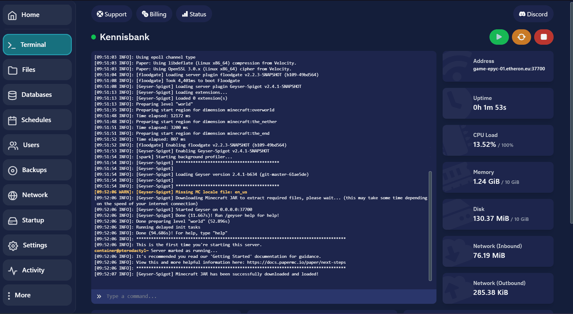 Navigeer naar de gewenste server op het Gamepaneel.