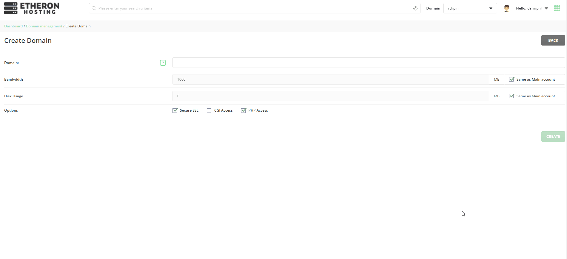 Klik vervolgens op Create rechtsonder om de instellingen toe te passen en de domeinnaam te activeren