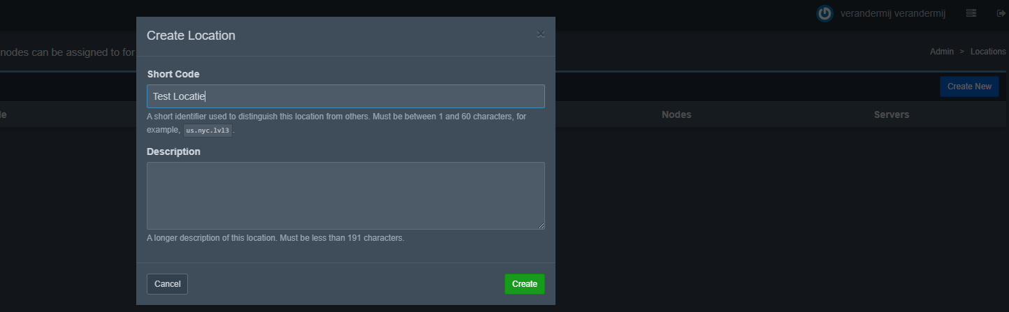 Kies een naam voor je locatie, In dit geval gebruiken wij Test Locatie