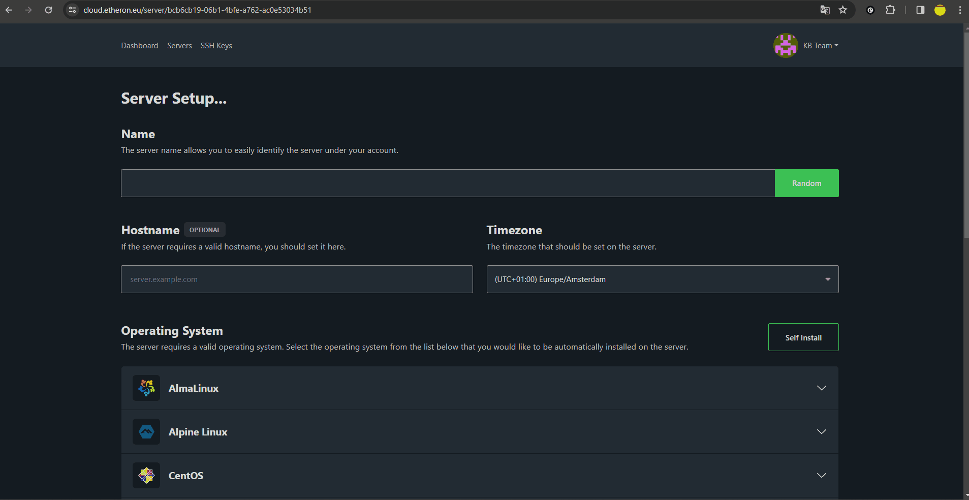Wil je dat je VPS onmiddellijk werkt na de installatie ? Dan raden wij Debian aan, Ubuntu zal na de installatie updaten en kan dus een enkele minuten duren voordat je hierop kunt inloggen.1. Ga naar https://cloud.etheron.eu/