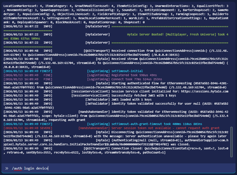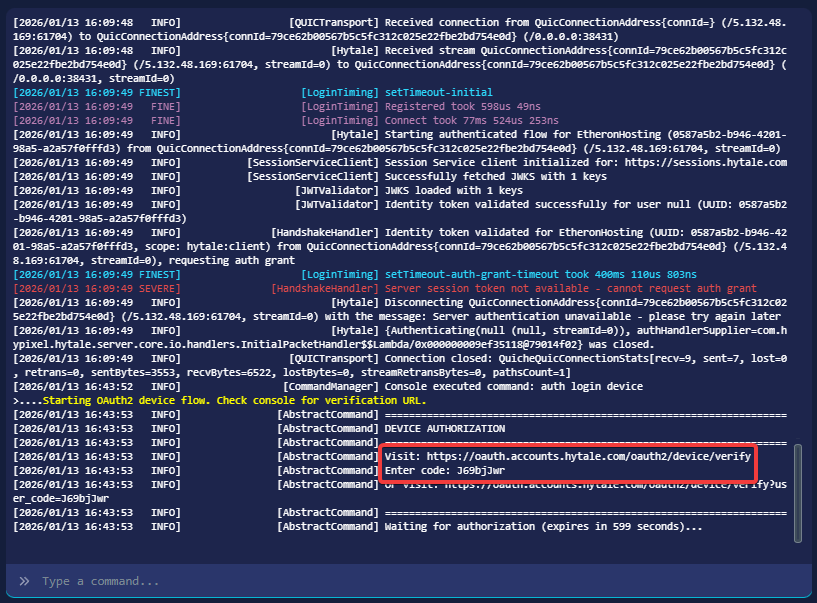 14. Na de restart moet je de volgende command uitvoeren: /auth login device